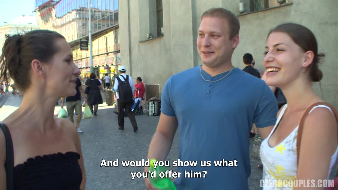 Чешская девушка вместе со своим парнем, познакомилась на улице с молодой парой и уговорила их заняться свинг сексом. Свингеры пошли в укромное место на окраине города и занялись групповым сексом прямо на улице. Девки стали целовать друг дружку и отсасывать члены у двух возбуждённых парней. Молодые свингеры трахались среди деревьев в разных позах, после чего обе девушки были забрызганы спермой.