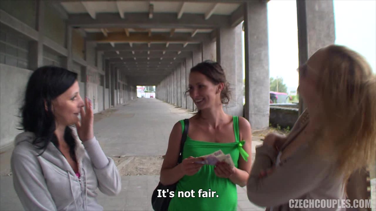 Чешская девушка, любительница свинг секса, гуляла по городу со своим парнем и уговорила двух девчонок - сисястую блондинку и тощую брюнетку, заняться с ними групповым сексом за хорошее вознаграждение. Девчонки поломались, но всё таки согласились на свинг секс и стали раздеваться на опустевшей стройке. Они отлизали киску уговорившей их свингерше и сделали минет её парню. Затем возбуждённый парень оттрахал всех трёх девушек на свежем воздухе и забрызгал их сиськи спермой.