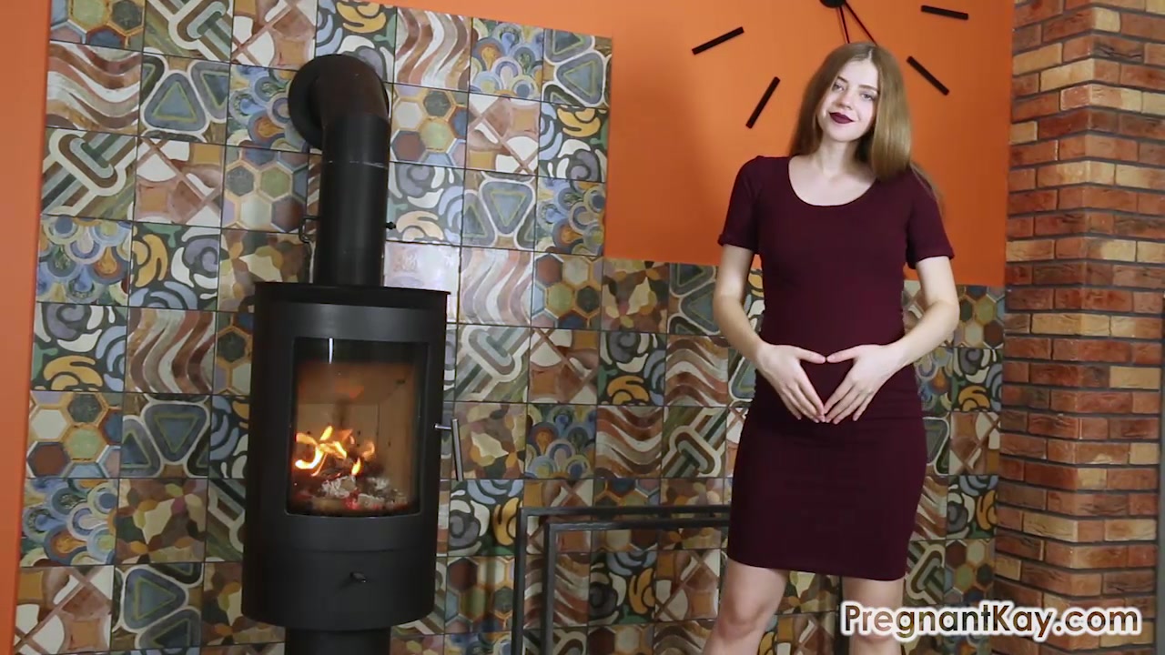 Красивая беременная русская девушка Kay J, позирует в бордовом облегающем платье и ласкает свой большой живот. Блондинка трогает руками большую грудь и потихоньку снимает платье и стринги. Раздевшись догола, улыбчивая беременная девушка демонстрирует свою сексуальную фигурку в самых разных ракурсах.