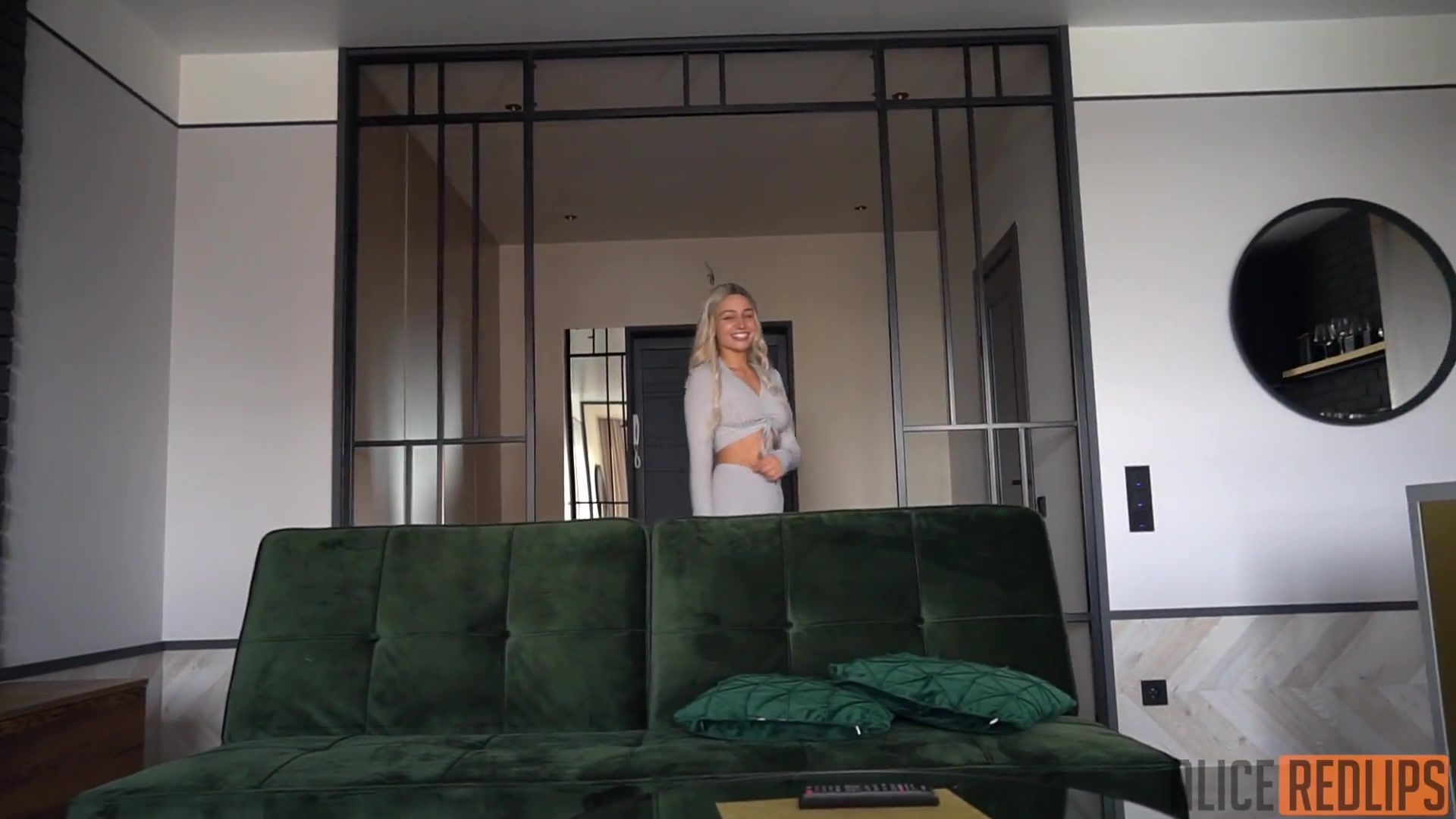 Шикарная молодая блондинка с большими титьками и тату на животе Alice Redlips, показывает бойфренду своё сексуальное тело и начинает дрочить у него член. Она делает приятелю минет и подставляет под член бритую пизду. Перевозбуждённый парень ебёт горячую красотку в позе раком и заполняет её киску спермой.