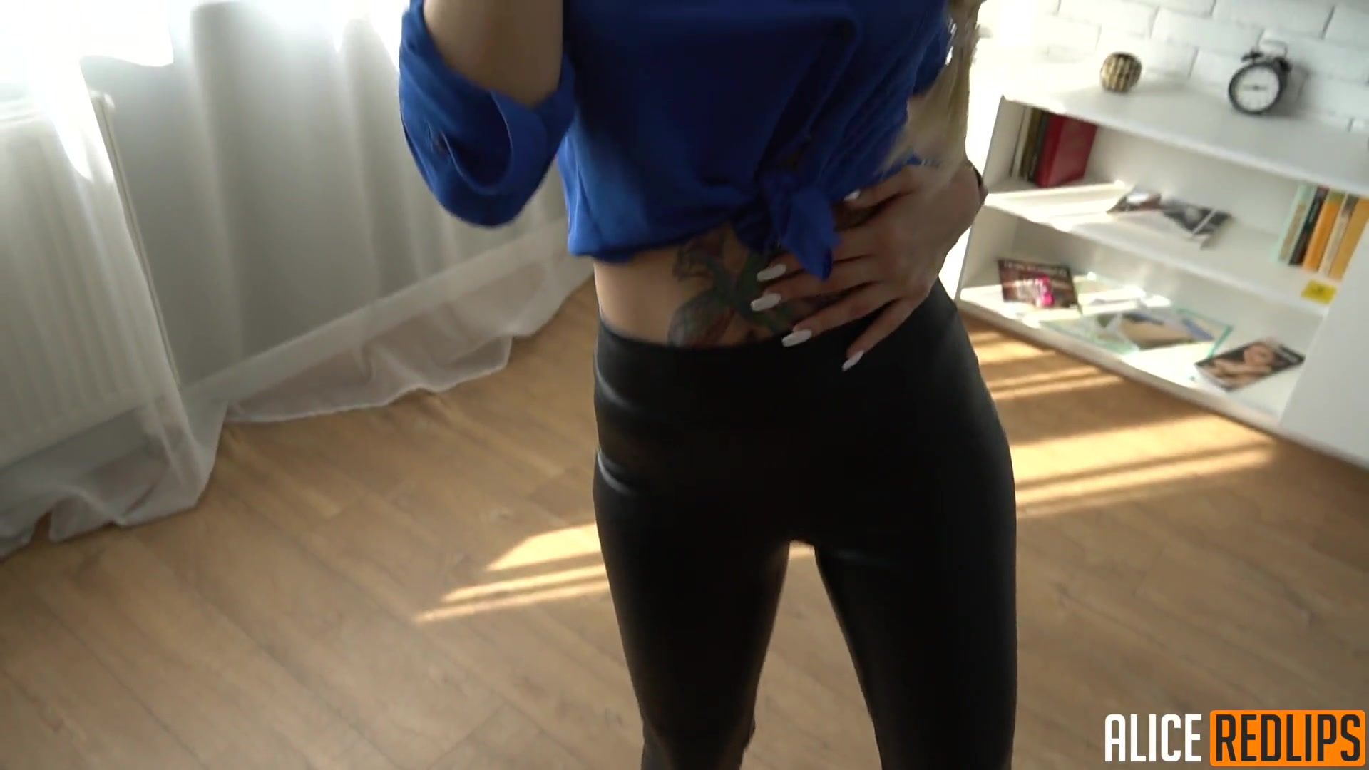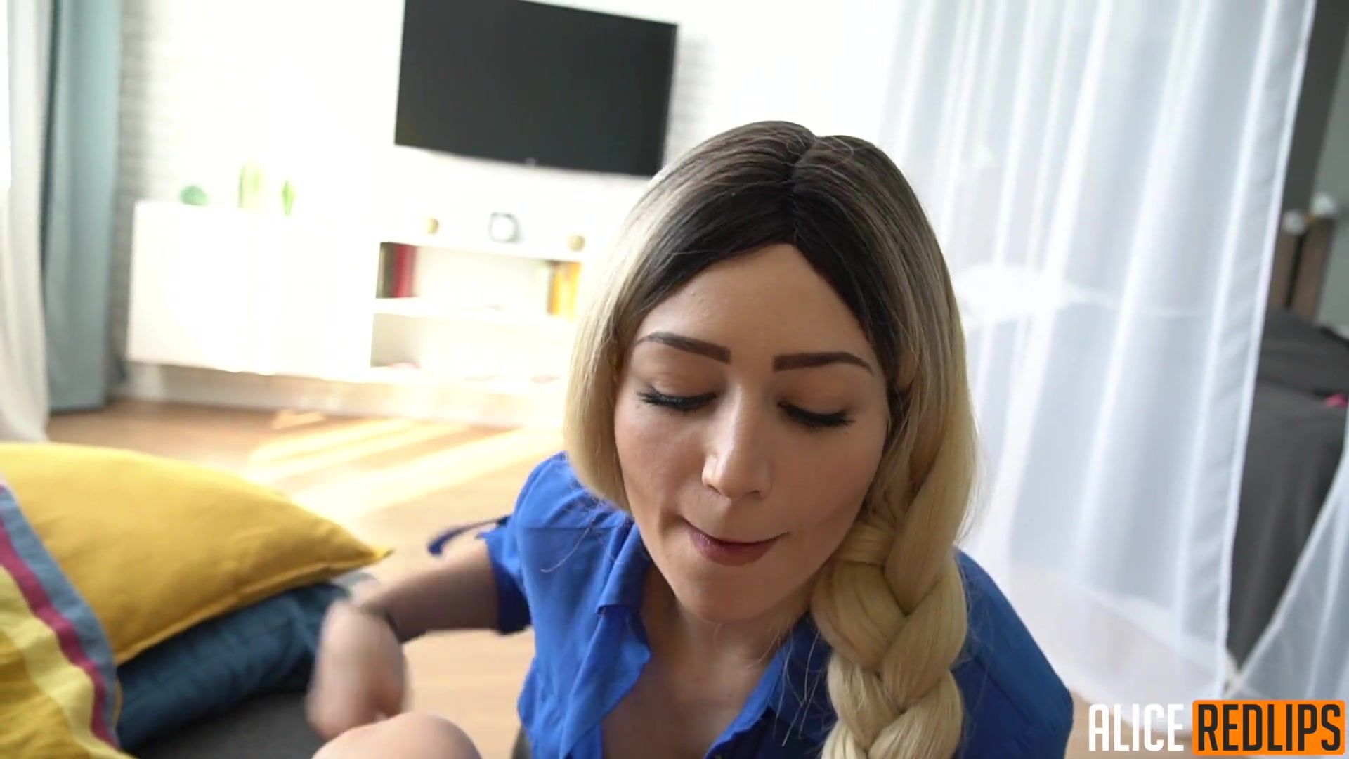 Красивая молодая блондинка с косой Alice Redlips, танцевала перед парнем под музыку и сильно его возбудила. Она сняла с него трусы, оголила большие сиськи и принялась дрочить член. Девушка сделала глубокий минет и вставила член в свою бритую письку. Блондинка трахалась с приятелем в разных позах, а в конце выдрочила сперму себе на лицо.