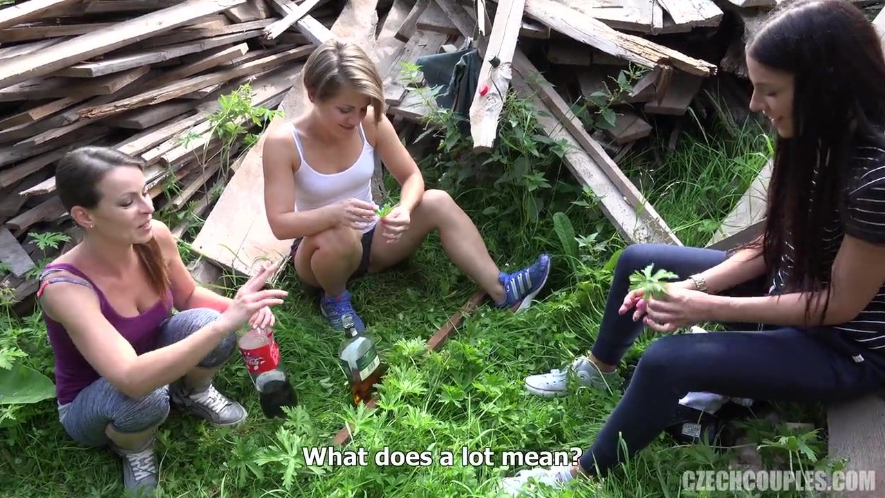 Девушка с длинными каштановыми волосами гуляла по парку с кавалером и увидела двух красивых девушек, сидящих на скамейке и распивающих виски. Она подошла к ним и уговорила заняться групповым свинг сексом на ближайшей поляне. Свингеры пошли в малолюдное место на окраине парка, где три девки стали целоваться и отсасывать у парня член. Девчонки занимались лесби сексом и трахались с парнем на свежем воздухе до тех пор, пока он не забрызгал спермой их красивые попы.