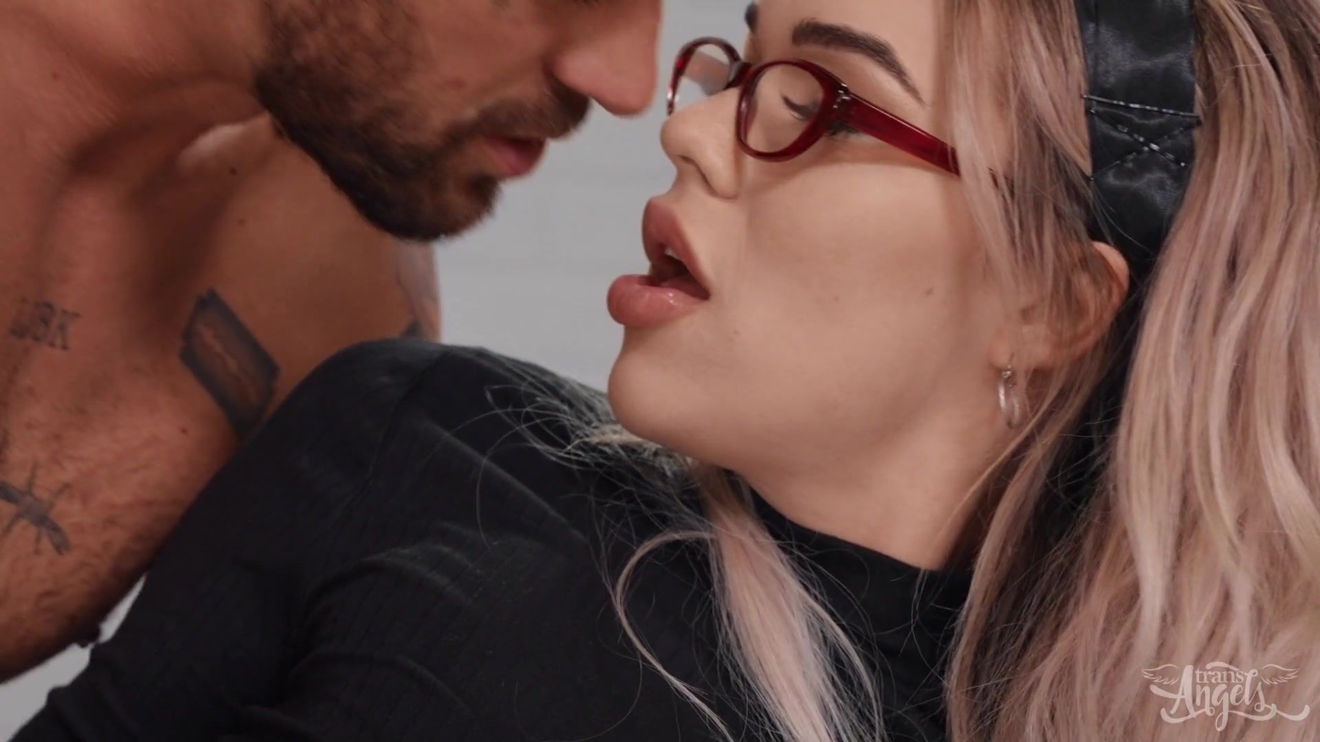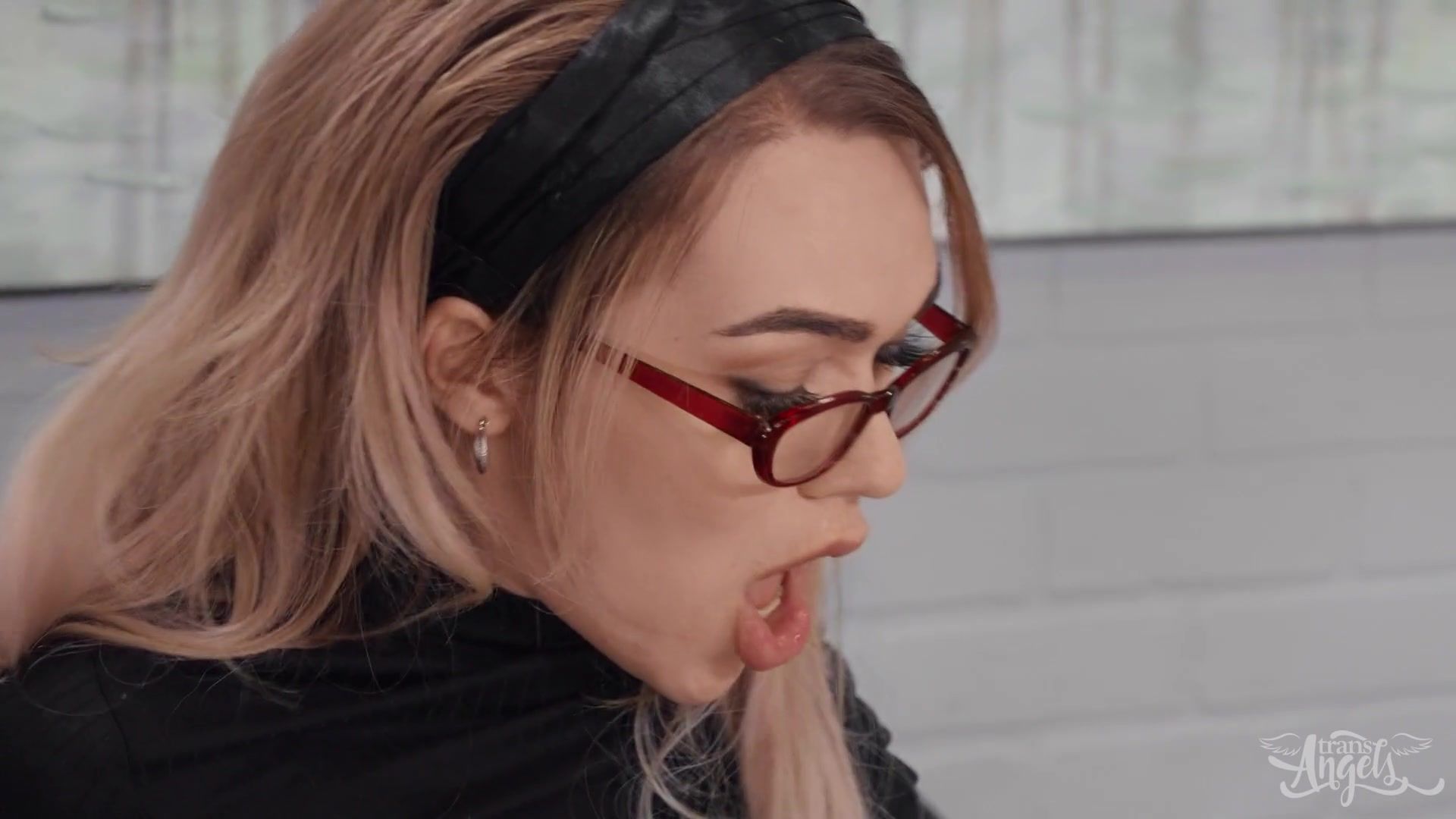 Бородатый парень пришёл на приём к работающему психологом, молодому светловолосому транссексуалу в очках Emma Rose. После короткой беседы, возбудившийся парень принялся жадно отсасывать у транса член. Затем красивый транс сделал парню минет и дал отодрать себя в разработанный анус. Секс с худым трансом в офисе закончился семяизвержением на его лицо.