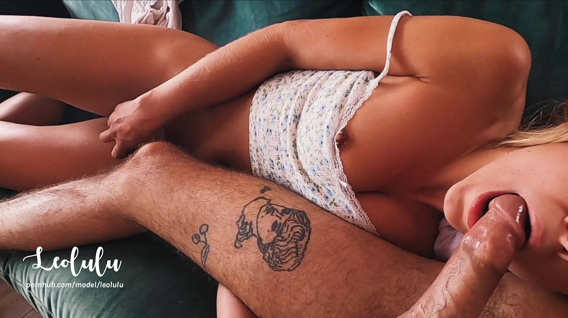 Молодая блондинка с пирсингом в сосках LeoLulu, отсасывает и дрочит член у своего парня, одновременно мастурбируя свою киску вибратором. После минета, парень дрочит её аккуратно подстриженную письку и делает куннилингус. Затем он трахает разгорячённую подругу на диване и заливает спермой её взмокшую киску.