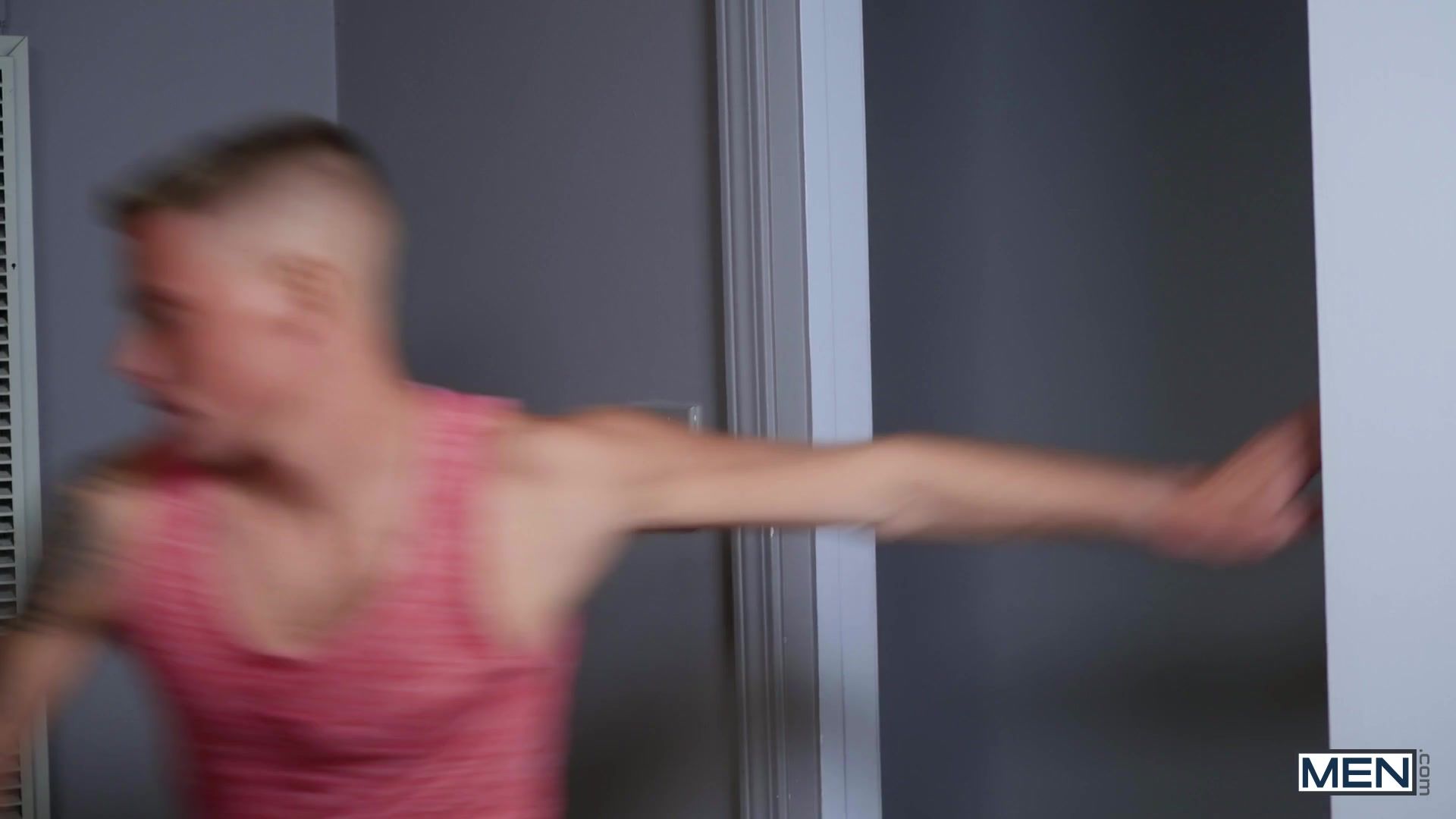 Голубой парень вышел из душа и отпердолил в очко худого друга с тату