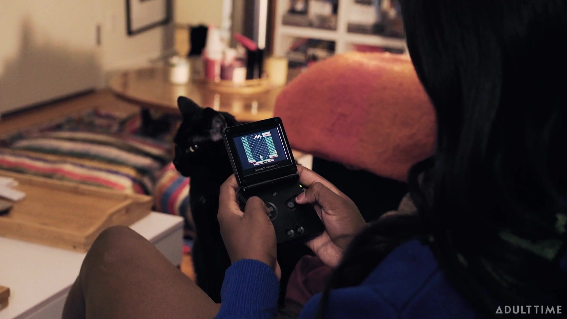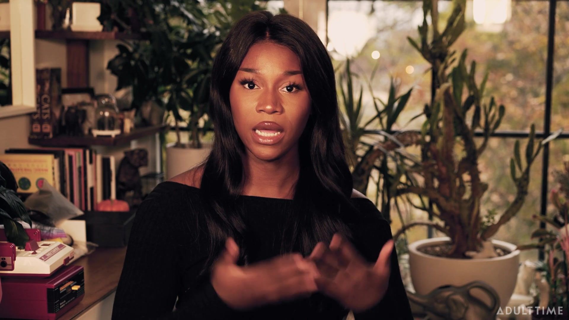 Молодой чернокожий транссексуал Vanniall отсасывает член и занимается сексом на кровати с небритым белым парнем Ashley Lake.