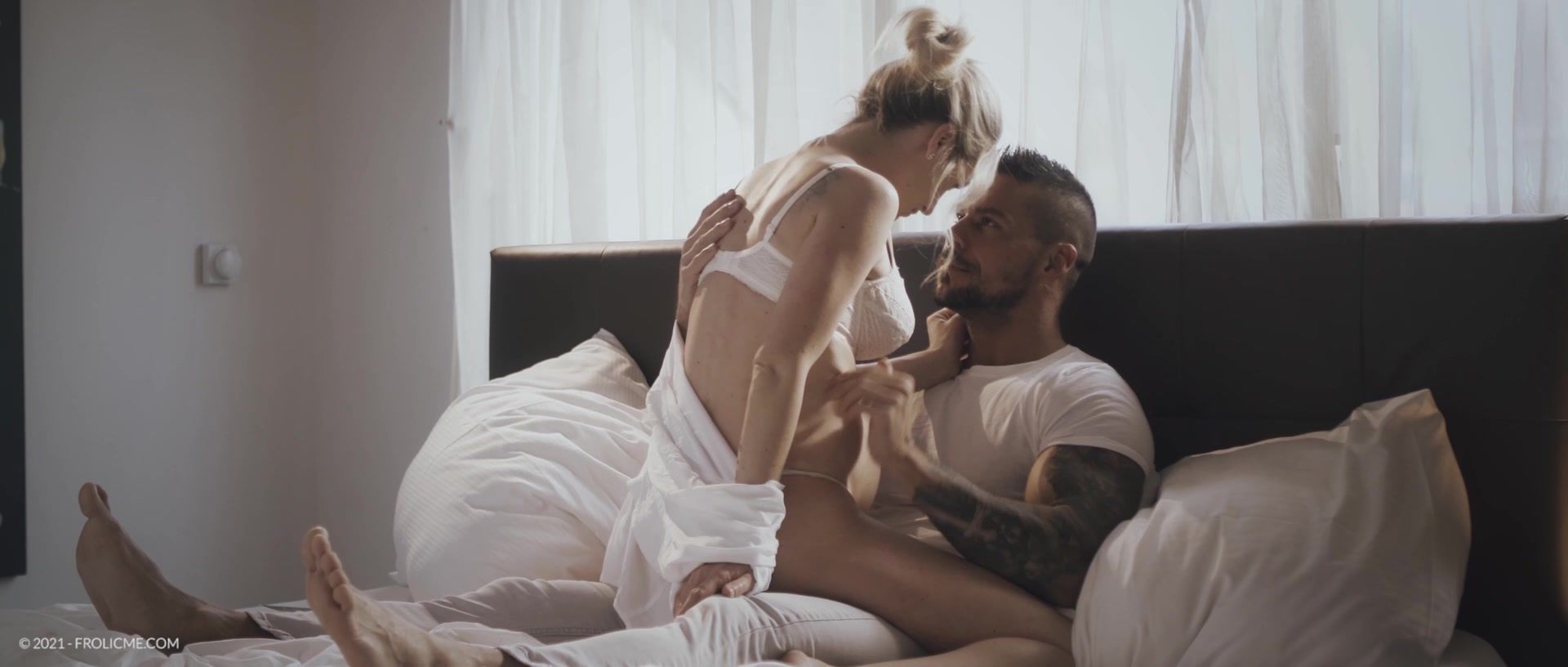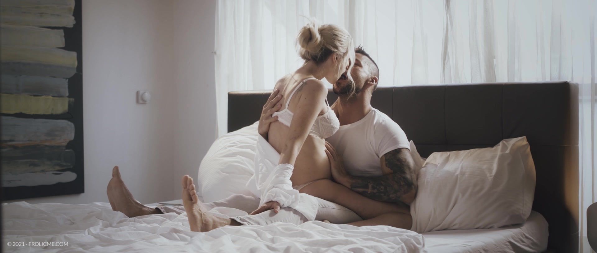 Беременная светловолосая жена с большими сисями Vinna Reed, делает минет мужу и трахается с ним на кровати до тех пор, пока он не кончает в её влагалище.