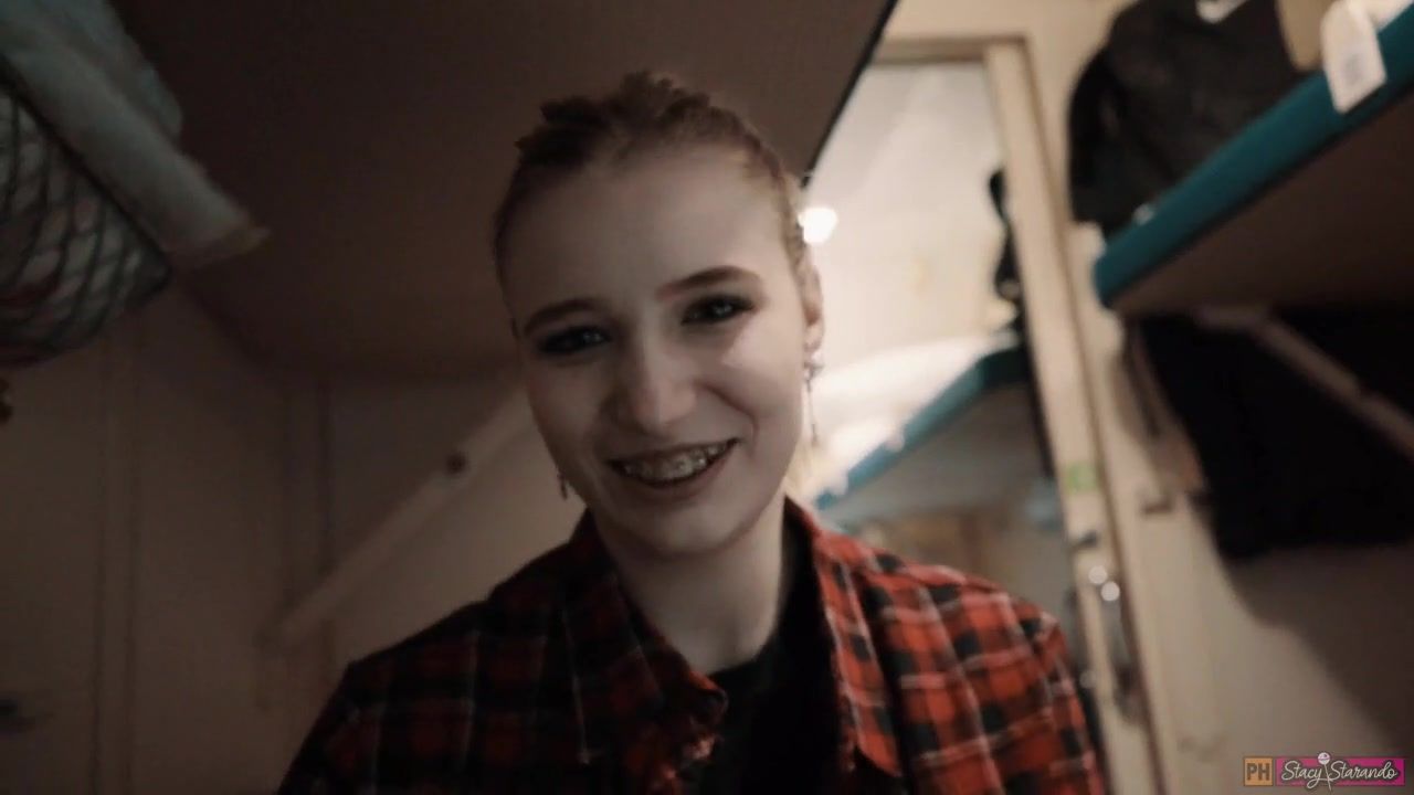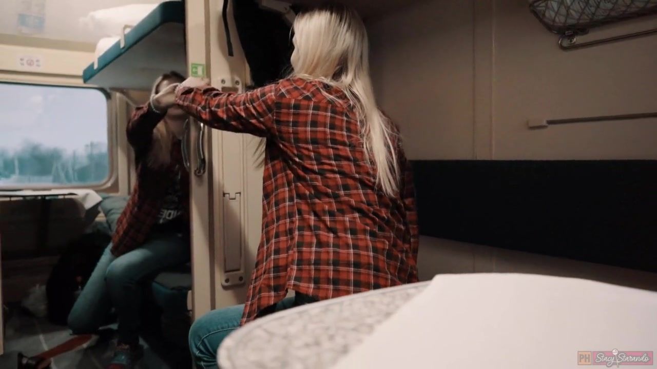 Светловолосая русская девчонка сосёт у попутчика член в купе поезда