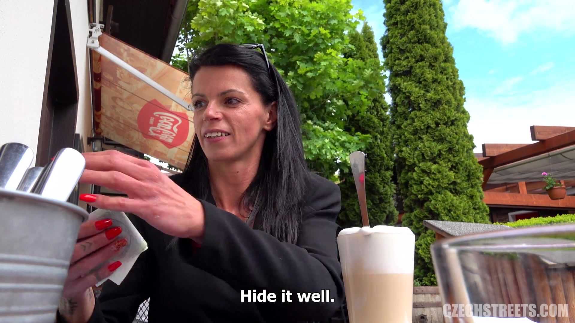 Зрелая грудастая брюнетка Nina Roca, за деньги делает пикаперу минет в подворотне и даёт отыметь себя в анал, после чего выдрачивает сперму на грудь.