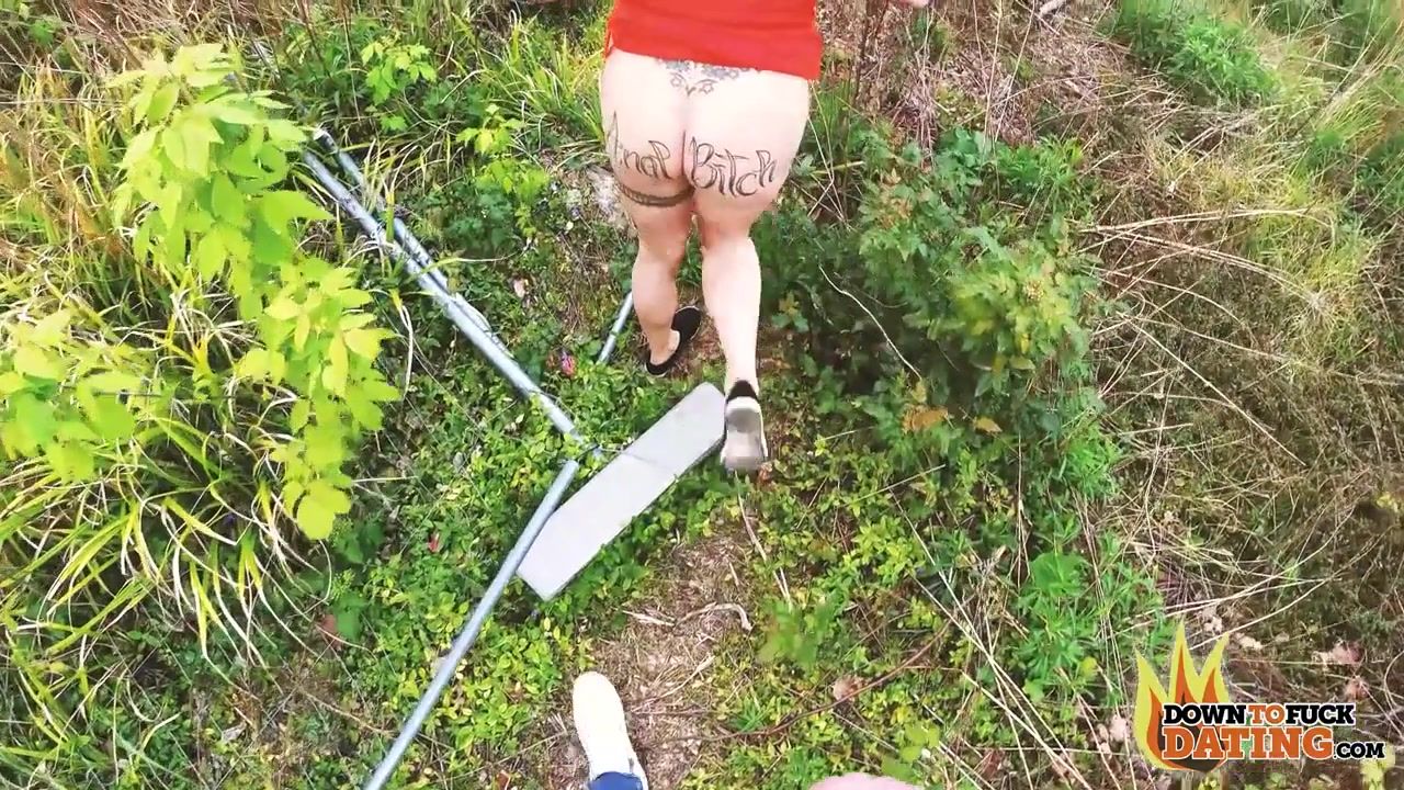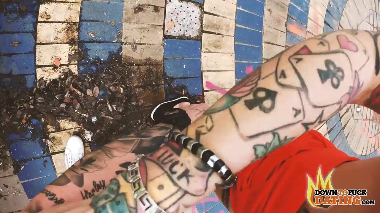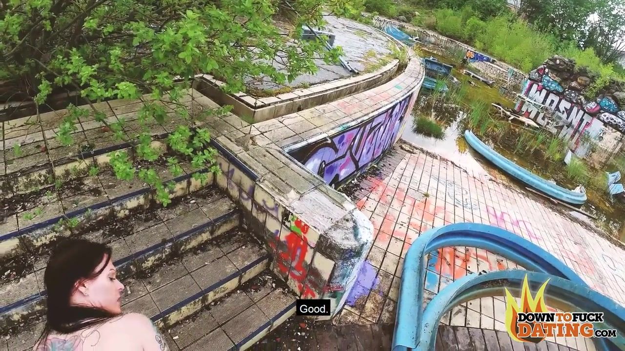 Сиськастая татуированная дама ебётся во все дырочки посреди развалин