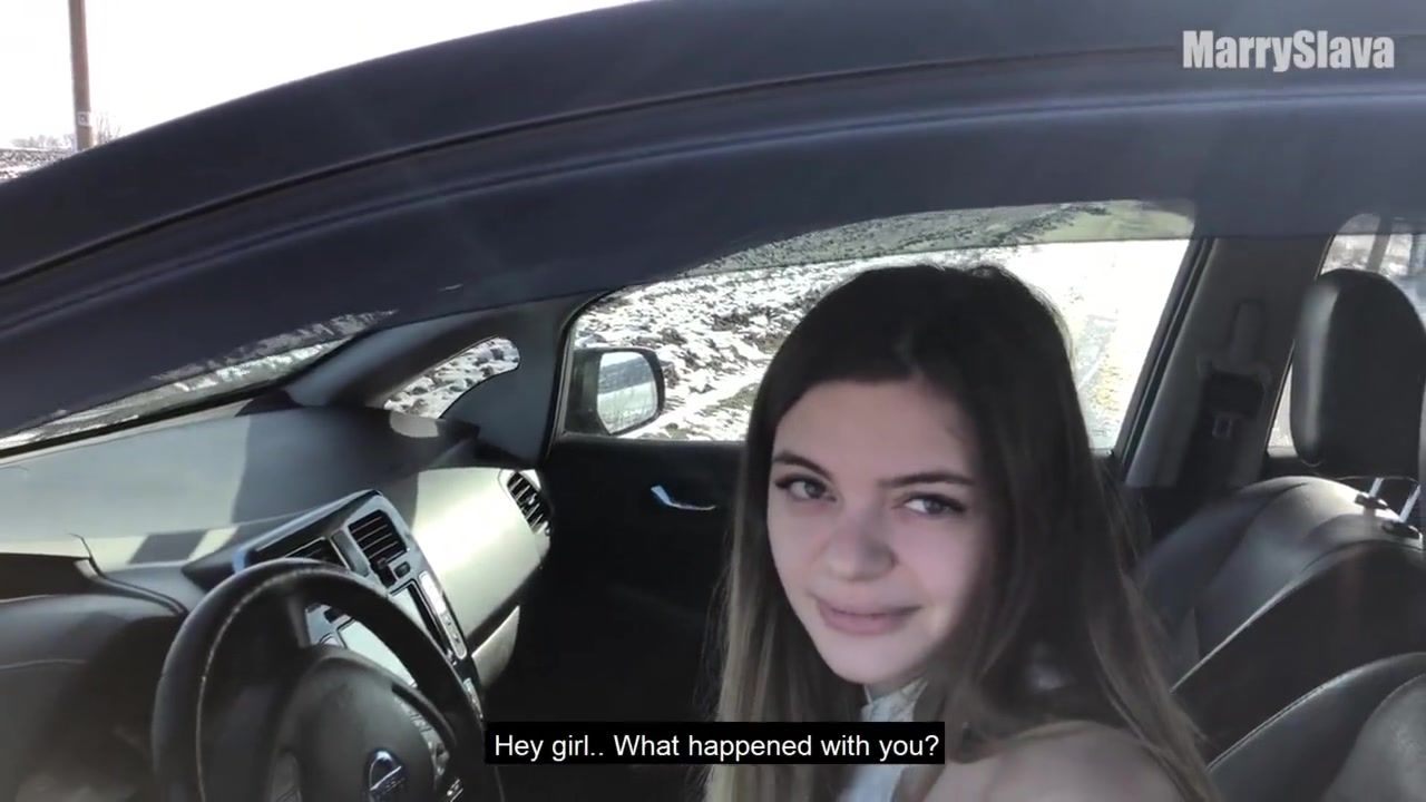 Вежливый парень помог молодой русской блондинке MarySlava припарковать машину на обочине и получил от неё благодарность в виде минета. Девушка отсосала член у сидящего на водительском сиденье парня и оголила свои большие сиськи. Она была оттрахана пареньком в автомобиле, а её попа забрызгана спермой.
