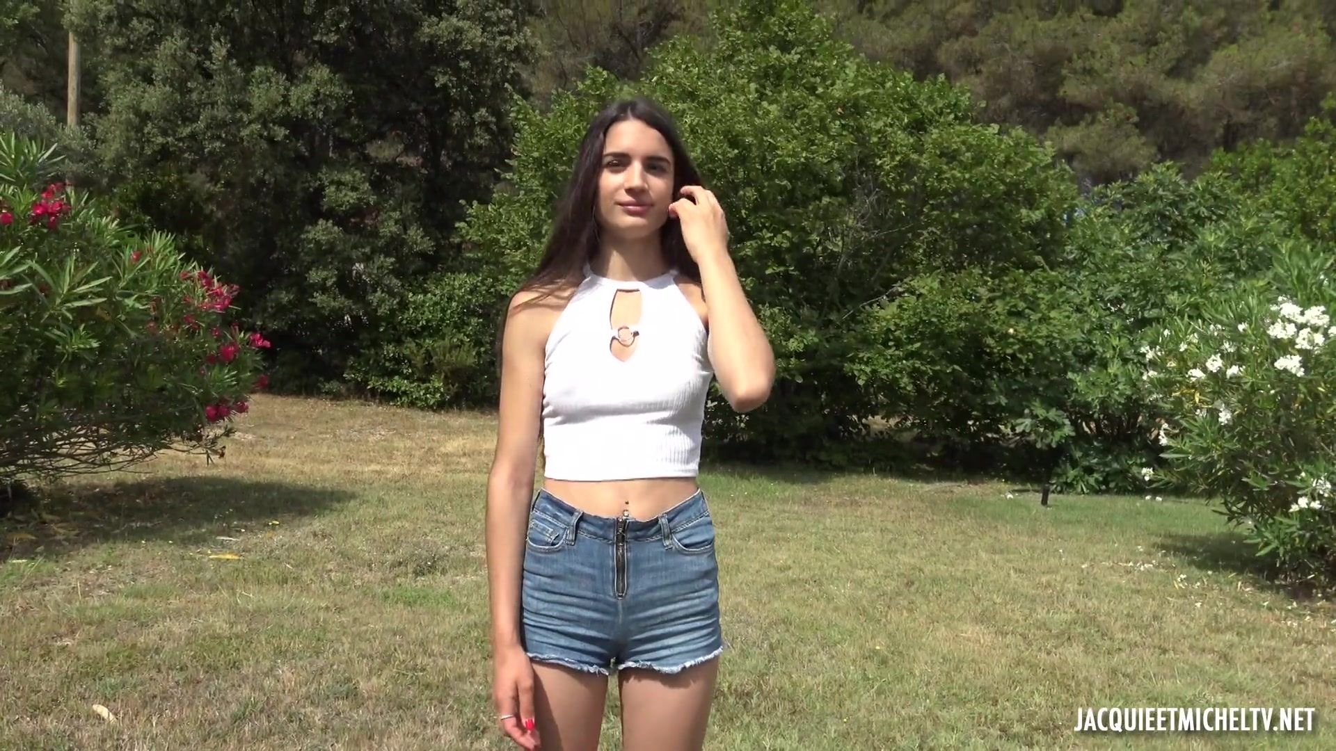 Стройная молодая шатенка Candie, отсасывает член у мускулистого негра и страстно трахается с ним на свежем воздухе во влагалище и анус до тех пор, пока негр не кончает ей в рот.