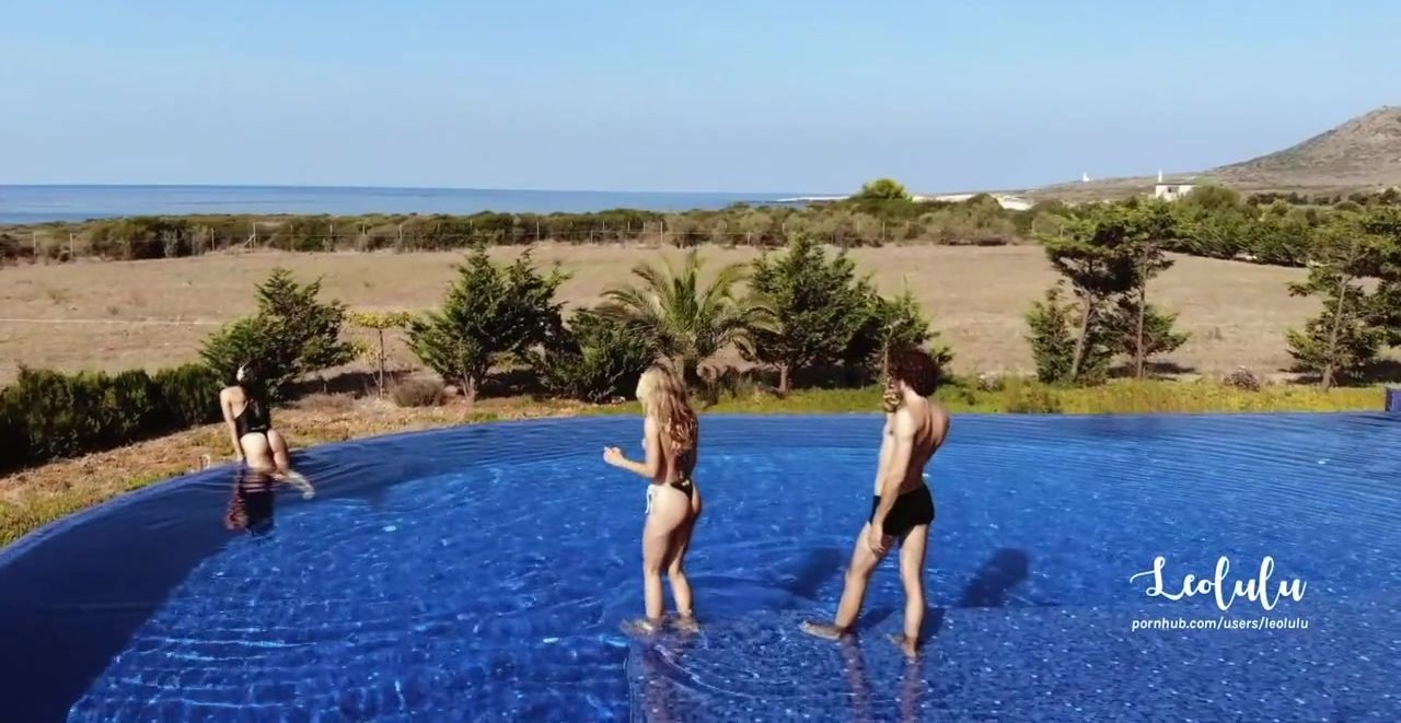 Молодая стройная блондинка LeoLulu, купалась с бойфрендом в открытом бассейне, расположенном на красивой загородной вилле. После купания и загорания, девушка сделала кавалеру минет на свежем воздухе и дала отыметь себя во влажную вагину. Перевозбуждённая девка трахалась с парнем возле бассейна до тех пор, пока он не кончил на её красивую попу.