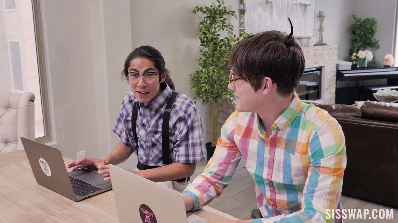 Молодая грудастая брюнетка Alex Coal и сисястая светловолосая девушка Kenna James, раздеваются догола и соблазняют двух очкариков на групповой секс. Они дают парням отлизать свои письки, а затем делают им минет. После оральных ласк, две пары трахаются на диване до тех пор, пока ребята не кончают в девичьи киски.