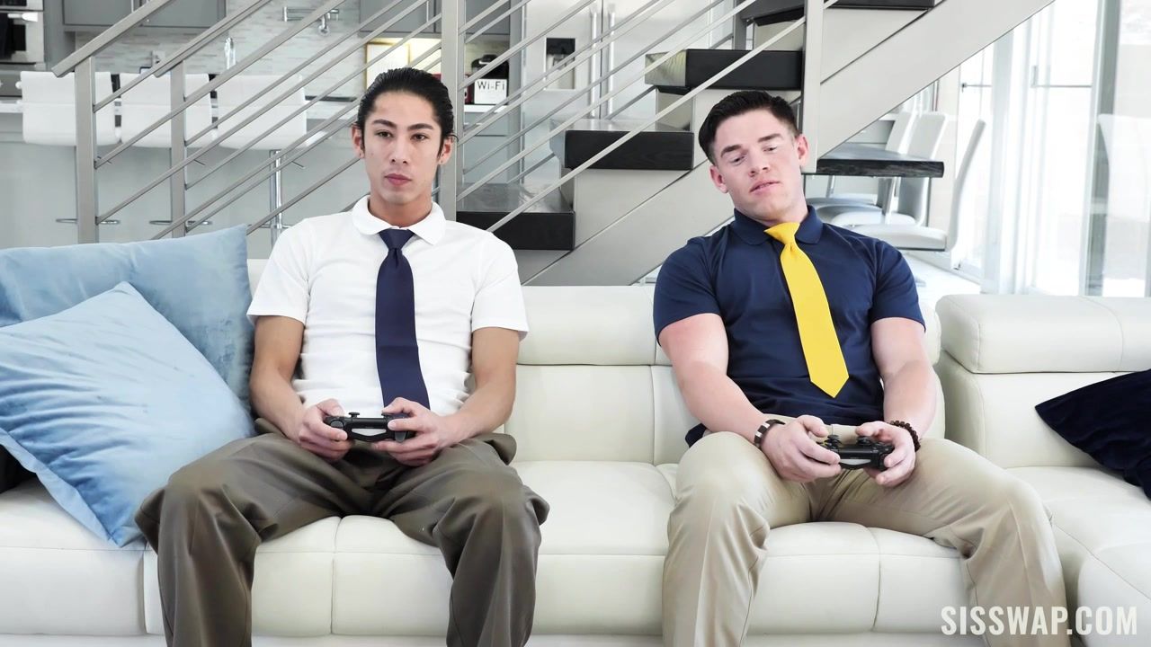 Молодая сиськастая блондинка Percy Sires и юная узкоглазая брюнетка Alona Bloom, подошли к двум ребятам и стали отсасывать у них члены. После сочного минета, перевозбуждённые парни оттрахали двух сексуальных тёлочек на диване в разных позициях. Групповуха закончилась семяизвержением на лицо блондинки и в пизду брюнетки.