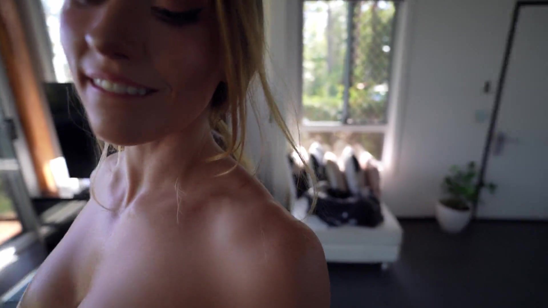 Разгорячённая молодая блондинка с большими дойками Scarlet Chase, вернулась со спортивной тренировки и захотела секса. Она сделала бойфренду минет и подставила под его твёрдый член свою влажную киску. Возбуждённая красавица была оттрахана на диване и доведена до мокрого оргазма, после чего её вагина залита спермой.