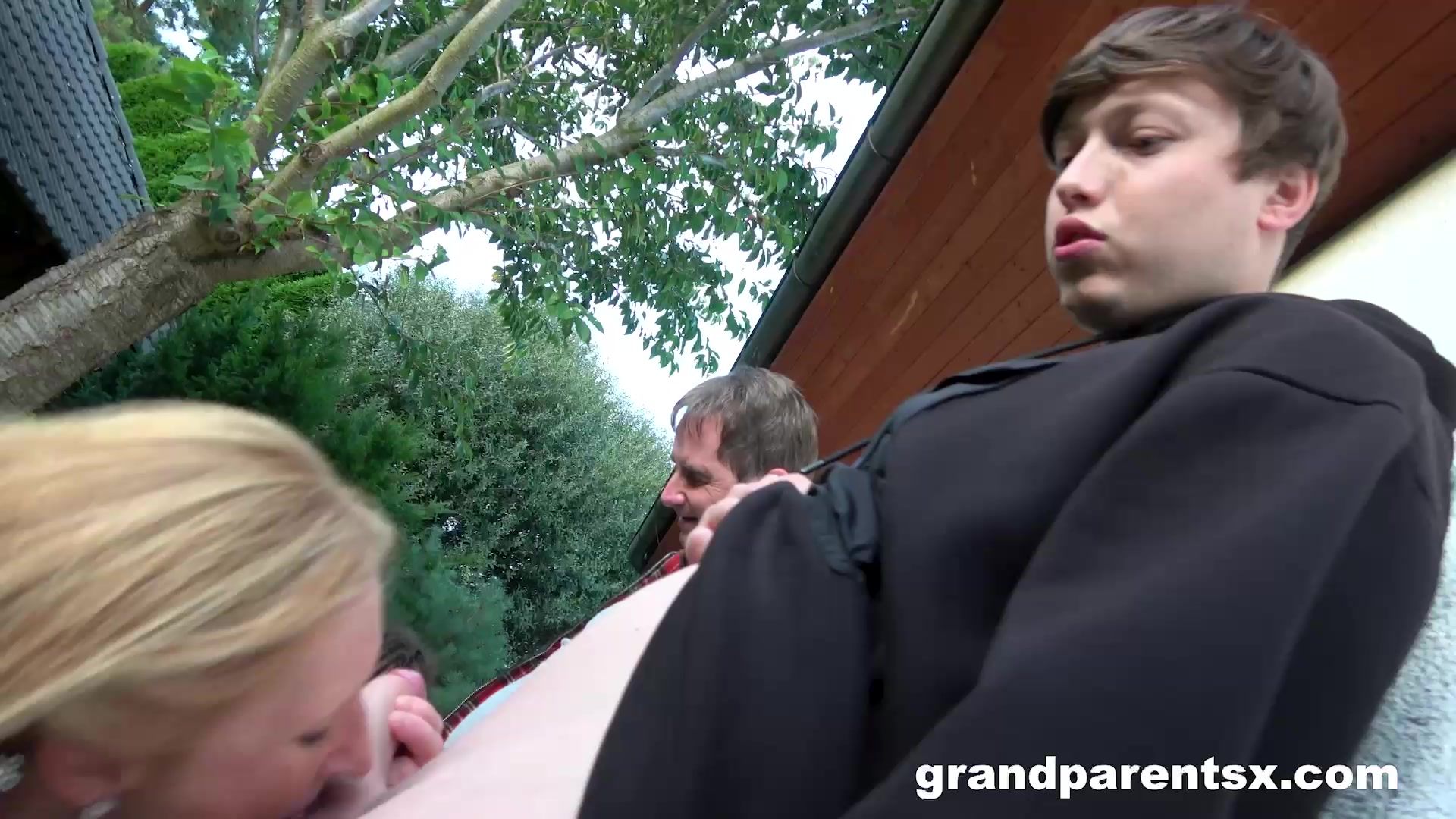 Зрелая грудастая блондинка Ginger Mi, во дворе отсасывала член у своего мужика, а из-за угла за ними наблюдала молодая мулатка Dhalia Janeiro со своим парнем. Молодая пара расположилась рядом и тоже занялась сексом на глазах у похотливой пожилой парочки. После совместного минета, обе пары занялись свинг сексом во дворе возле дома. Свингеры страстно трахались на траве до тех пор, пока мужики не забрызгали спермой ненасытную милфу.