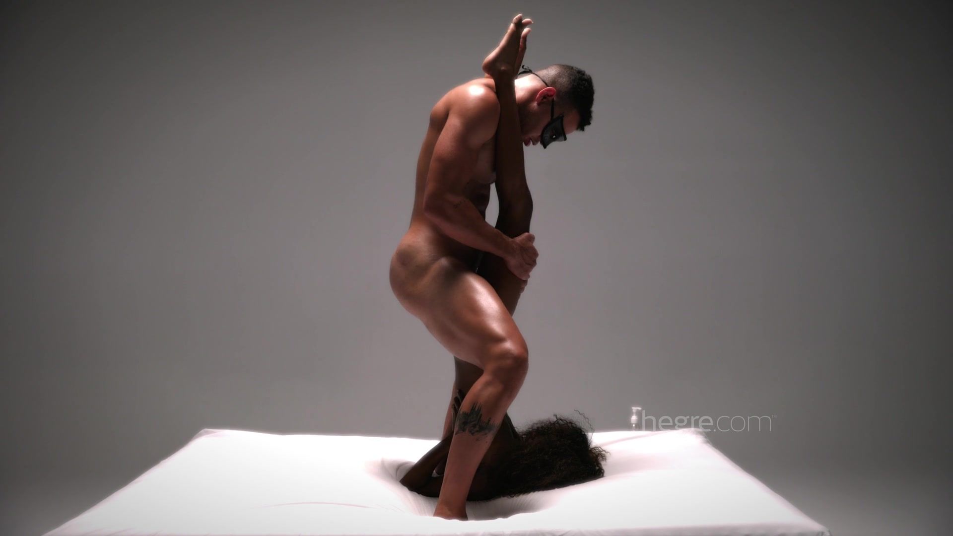 Молодая кудрявая негритянка со стройной фигурой и большой грудью Katherina, занимается любовью с мускулистым белым мужчиной. Во время этого страстного межрасового секса, перевозбуждённая пара использует разные сексуальные позиции. Испытав многие позы Камасутры, утомлённый мужчина кончает и поливает спермой шоколадную киску мулатки.