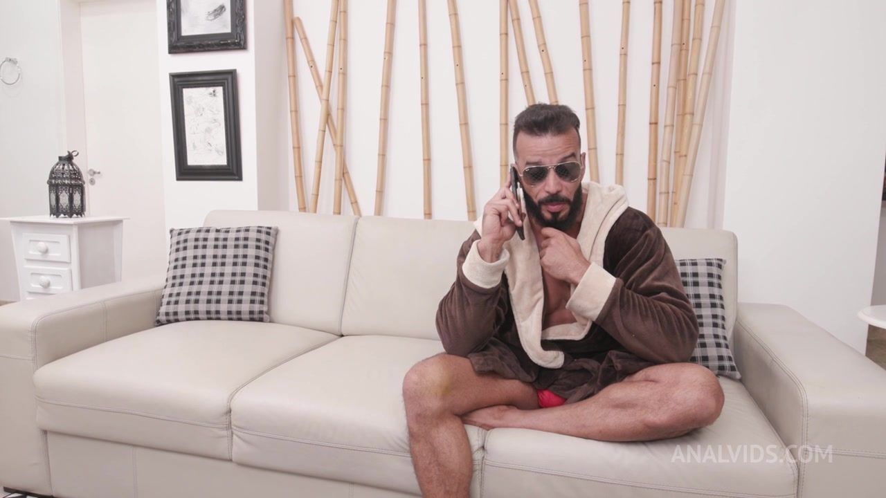 Мужчина с бородой пригласил в квартиру грудастую темноволосую эскортницу Cris Bathory. На вошедшей в комнату татуированной девке была надета сексуальная портупея и чёрные сапоги. Заждавшийся мужчина набросился на развратную шлюху, и после минета засадил свой твёрдый член в её анус. Эскортница была отпердолена на диване, а её очко заполнено спермой.