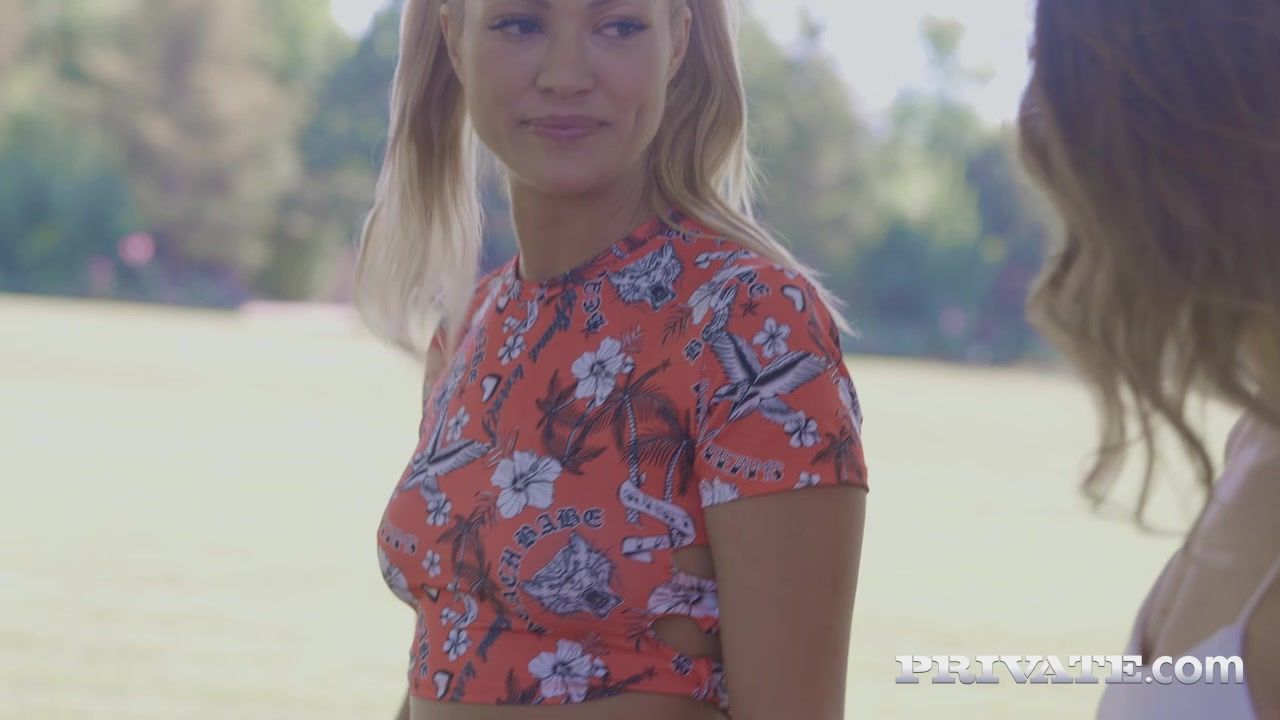 Белокурая зрелая женщина Blue Angel, возле пруда отпердолена небритым мужчиной во влагалище и анус, после чего её рот залит спермой.