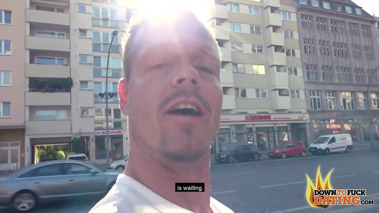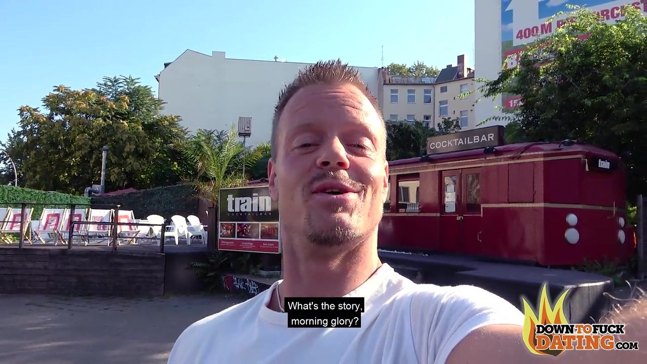 Сиськастая татуированная брюнетка трахается с мужиком прямо на улице