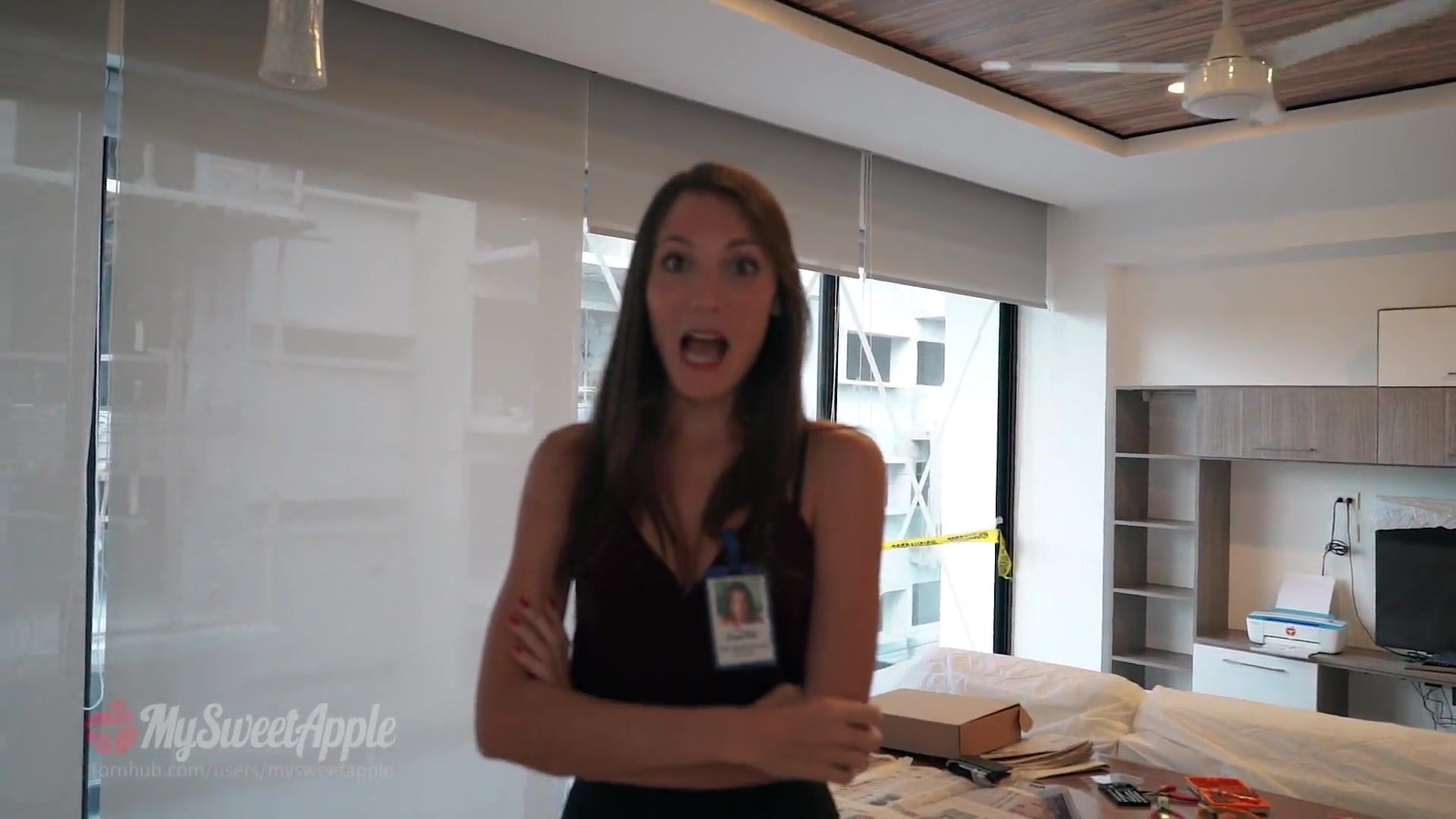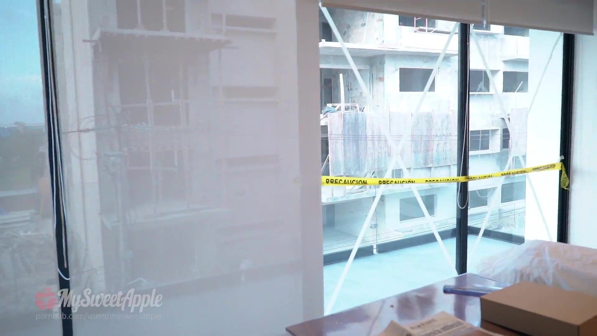 Молоденькая шатенка MySweetApple, отсосала хуй у работяги и трахалась с ним в квартире, где он делал ремонт.