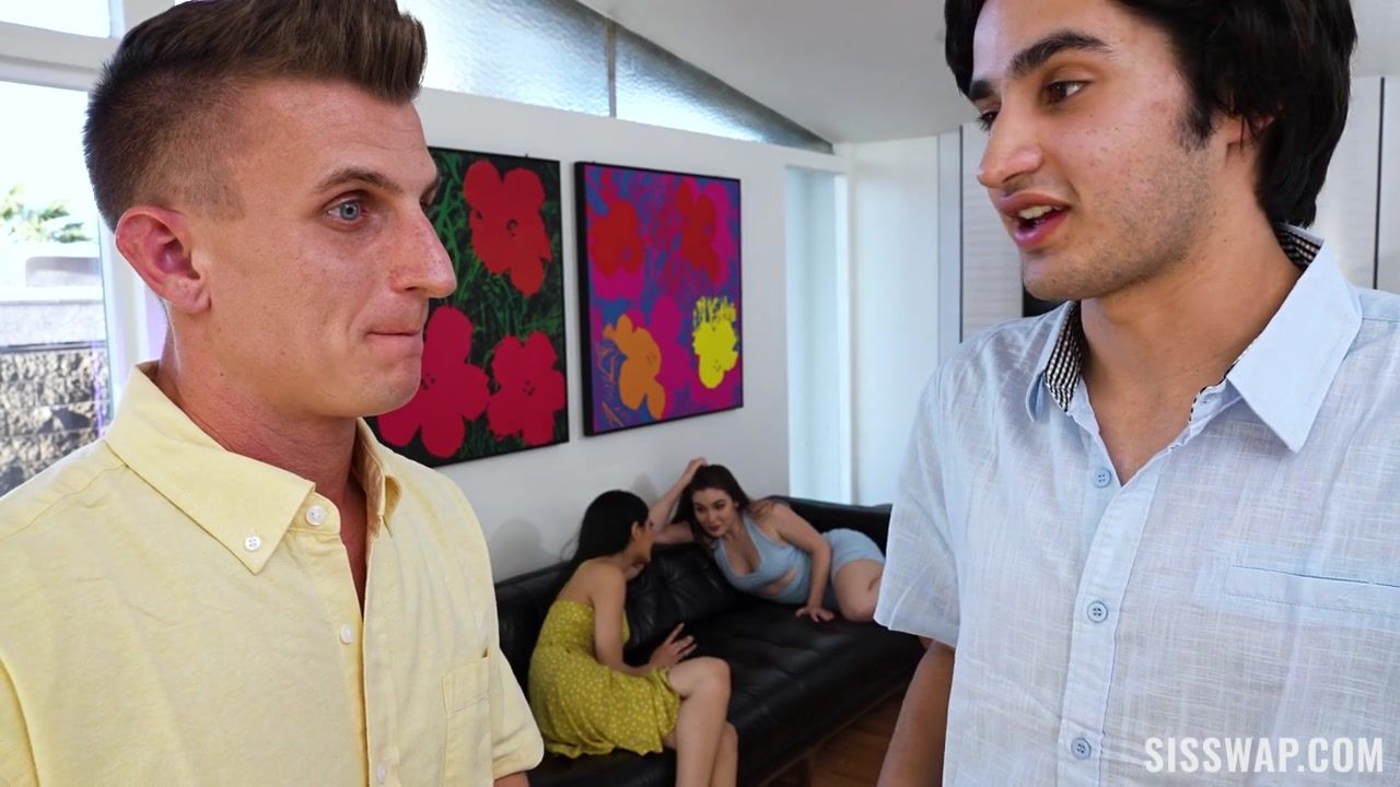 Двое ребят во время групповухи отымели молодых брюнетку Angel Gostosa и шатенку Lily Lou, после чего забрызгали спермой лица обеих девушек.